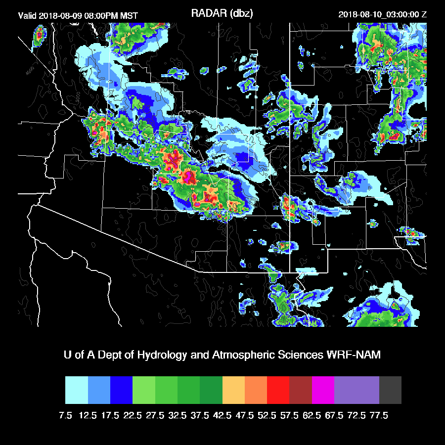 The 12Z runs weren’t much good as they didn’t predict much/any activity for Phoenix or Tucson. However, the 6Z runs were quite active and the 6Z WRFNAM turned out to be fairly accurate. In fact, the previous day forecasts were also fairly good for the Phoenix area after many days of generally predicting too much activity.