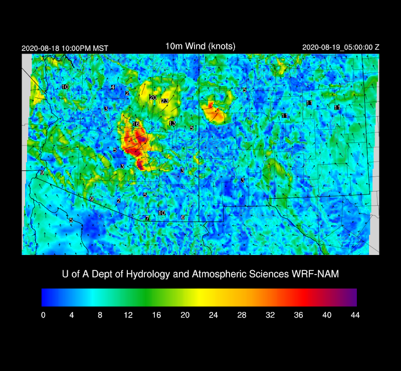 Model performance was again quite good, especially by the WRFNAM and WRFGFS. It was interesting to see that the morning runs of the HRRR did not predict a strong outflow boundary for Phoenix while the WRFGFS and NAM intensity was higher and covered a larger area.