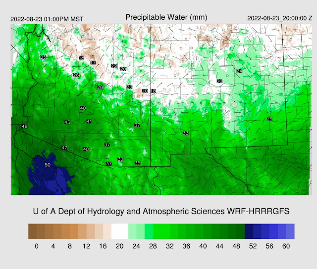 This slight drying results in only low CAPE for much of southeastern Arizona. The rest of the southern 1/2 of the state has moderate to high CAPE.