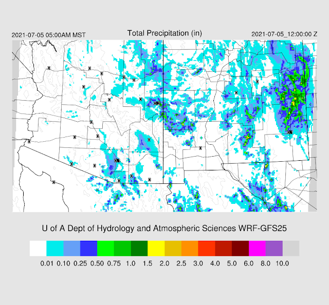 Some of the model runs had the right idea of moving/developing storms in the Tucson and Phoenix areas, but generally, underpredicted amounts. The 15Z WRFRR and the 6Z WRFGFS looked pretty good.